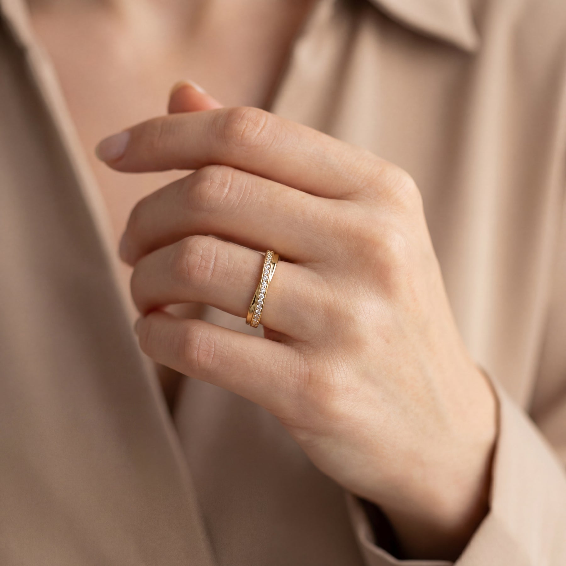 „LIAISON steht für Nähe und feine Verbindung. Ich wollte ein Design schaffen, das nicht nicht nur symbolisch wirkt, sondern das in jeder Licht und Schatten Reflexion diese tiefe Verbundenheit spürbar macht. Zwei Linien, die sich begegnen – ruhig, elegant und voller Bedeutung.“